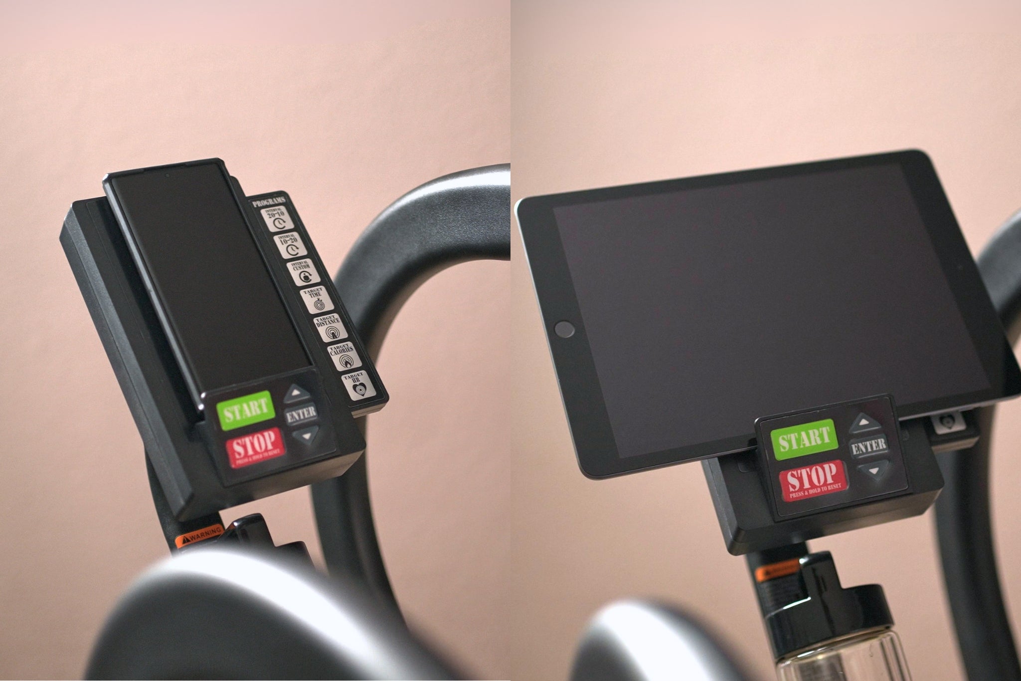 Unsere praktische Halterung ist gut positioniert und bietet eine Ablage für Ihr Smartphone oder Tablet. Ob Sie Ihre Lieblingsmusik hören, Trainingsvideos verfolgen oder Ihre Fitnessdaten in Echtzeit überwachen möchten – die Halterung sorgt dafür, dass Ihr Gerät immer in optimaler Sichtweite bleibt.
